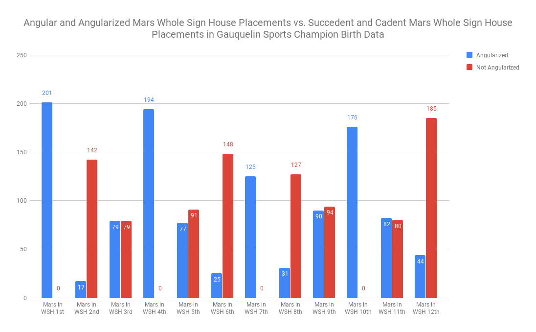 Here are the Whole Sign House Placements of Mars in the Gauquelin sports champions data: